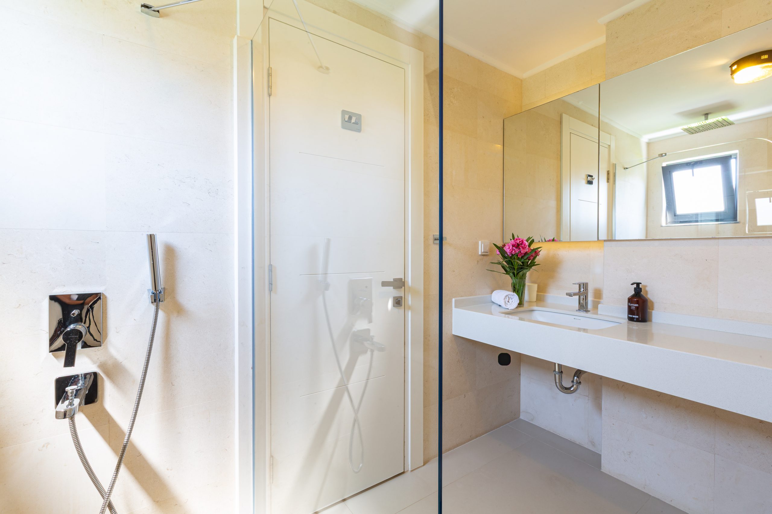 On the first floor are two large ensuite bedrooms, one with a large double bed and the other with twin beds. Both bedrooms have large balconies and breathtaking views.