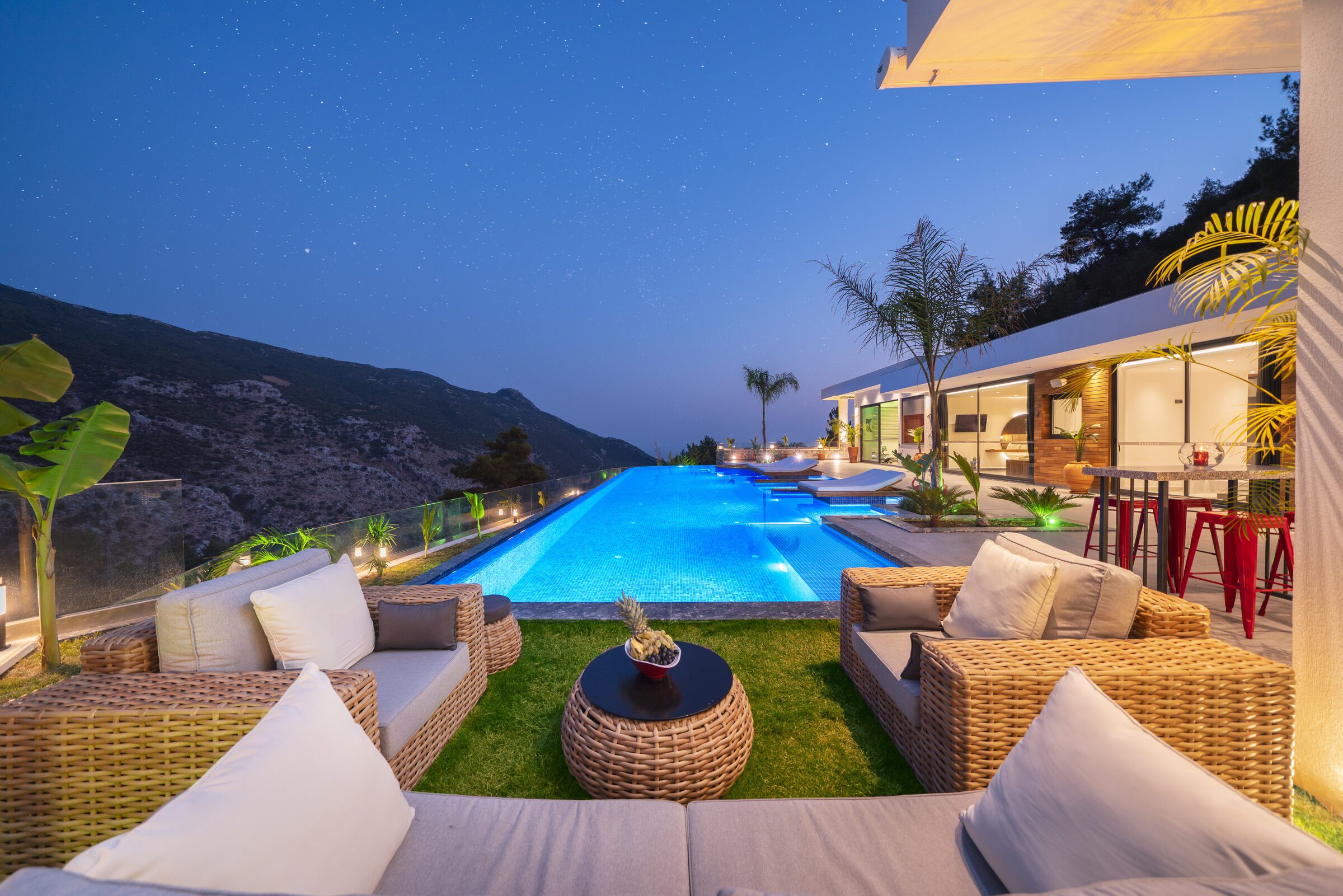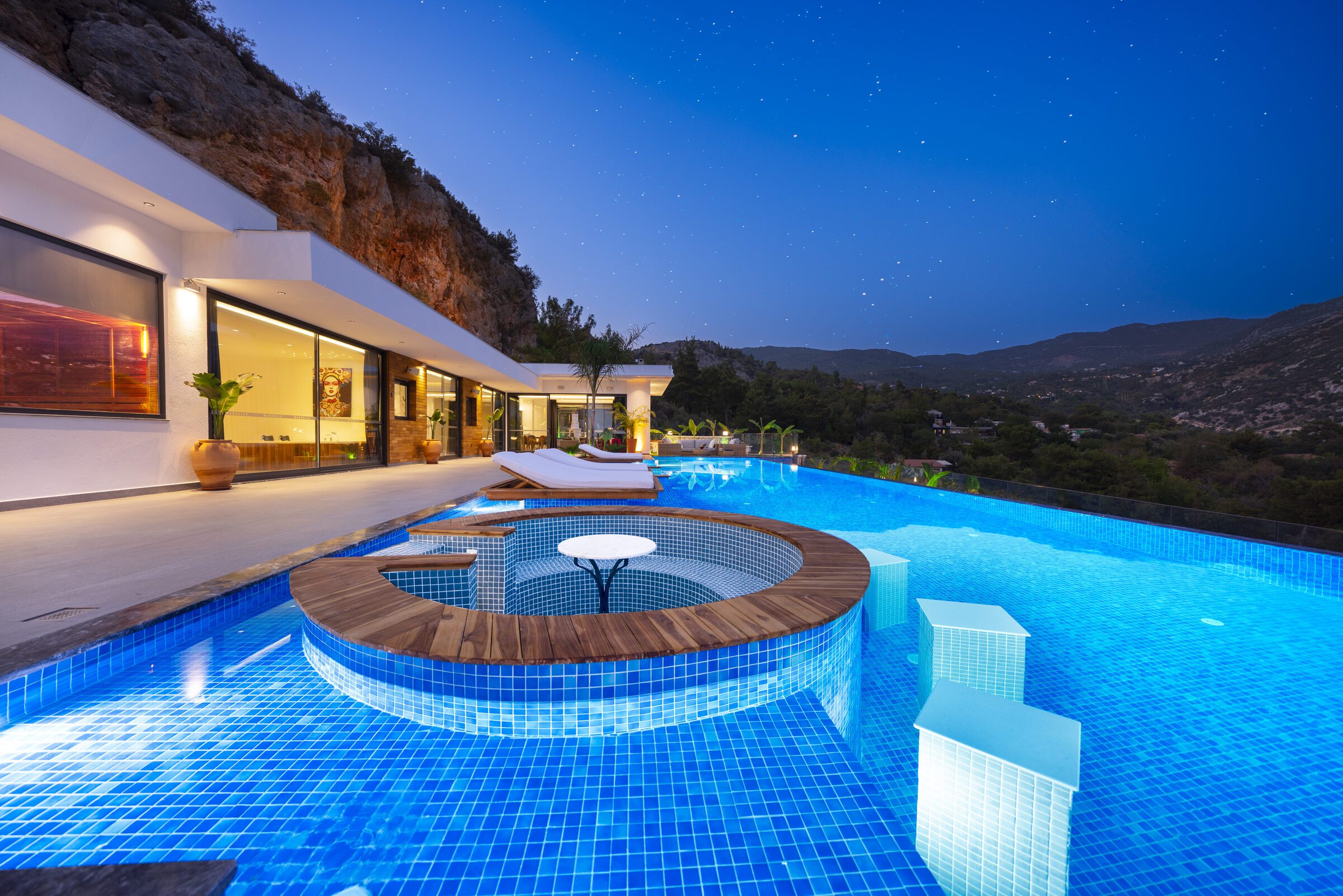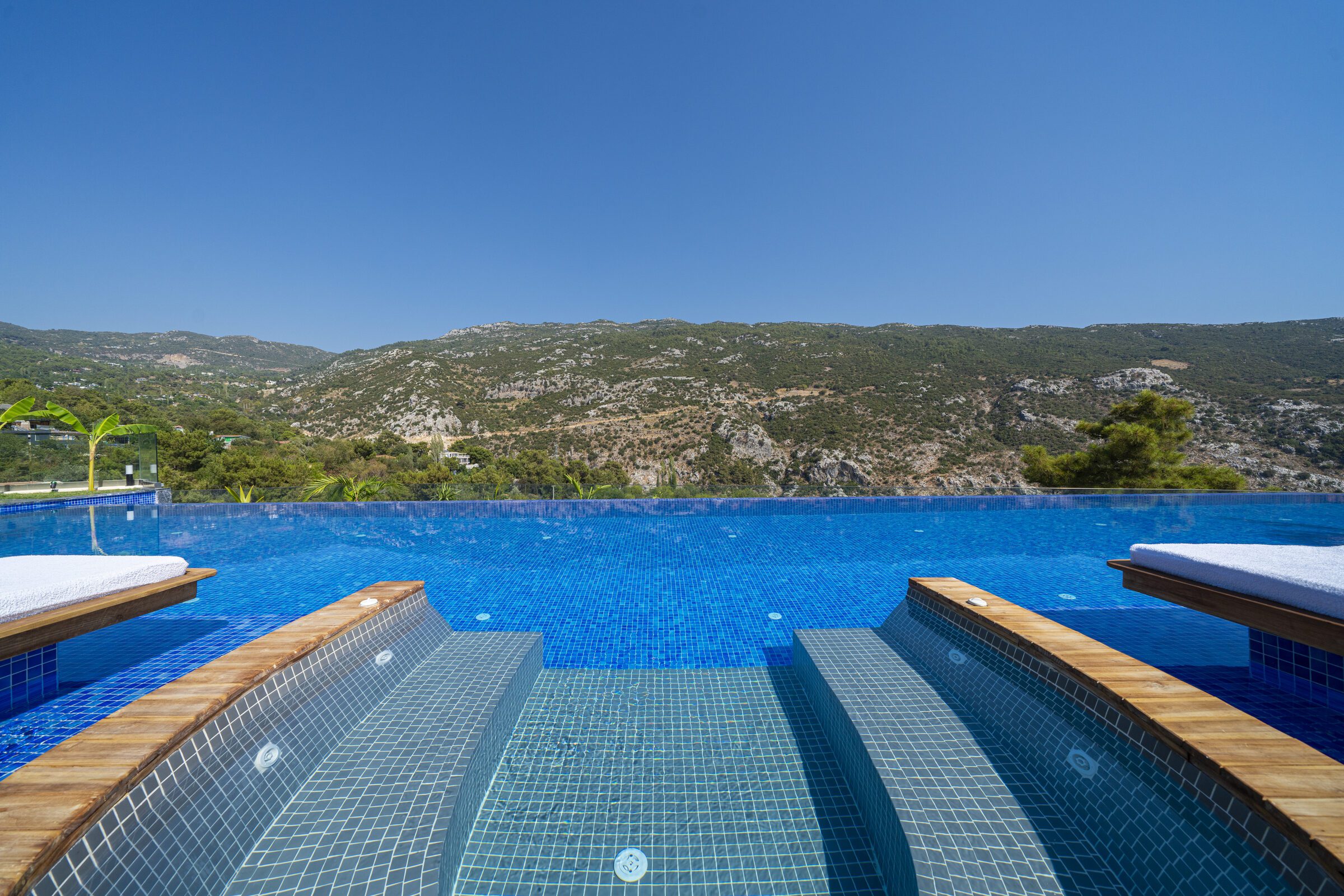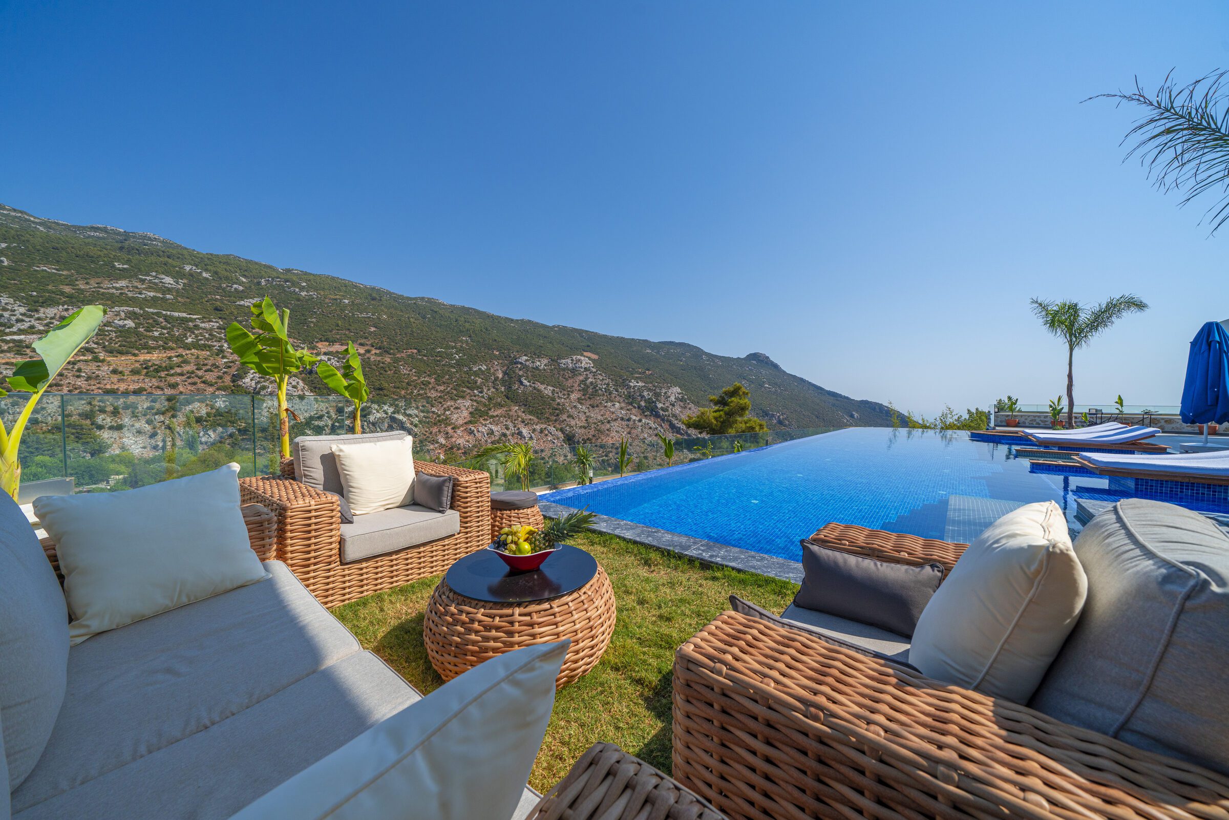 Villa Sade is a beautifully designed three-bedroom villa set in a peaceful countryside location near Kalkan, offering privacy, style and stunning valley views. The single-story villa features a spectacular 22-metre infinity pool with jacuzzi section and over-water sun loungers, creating a striking outdoor living space.