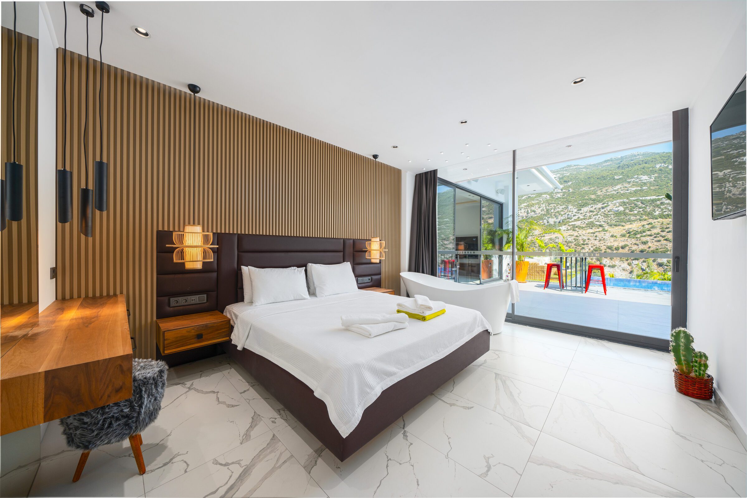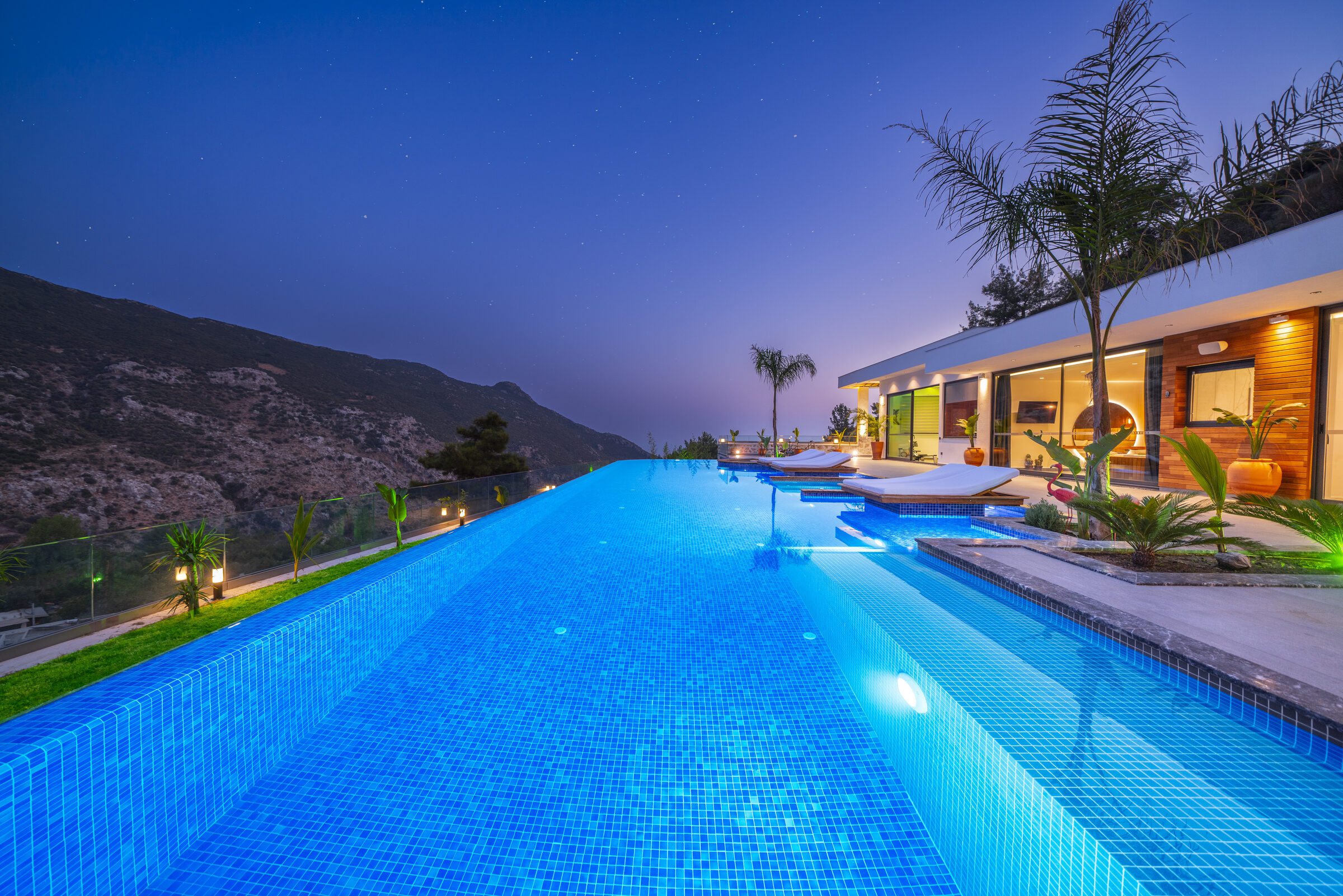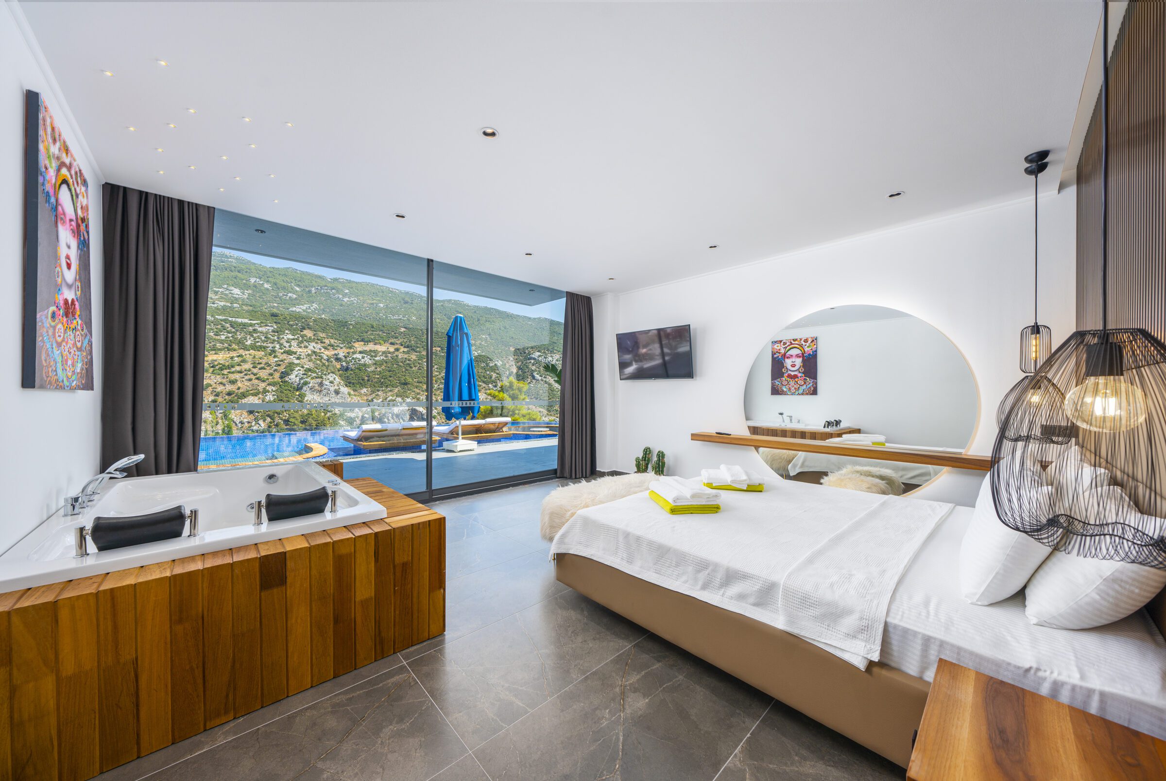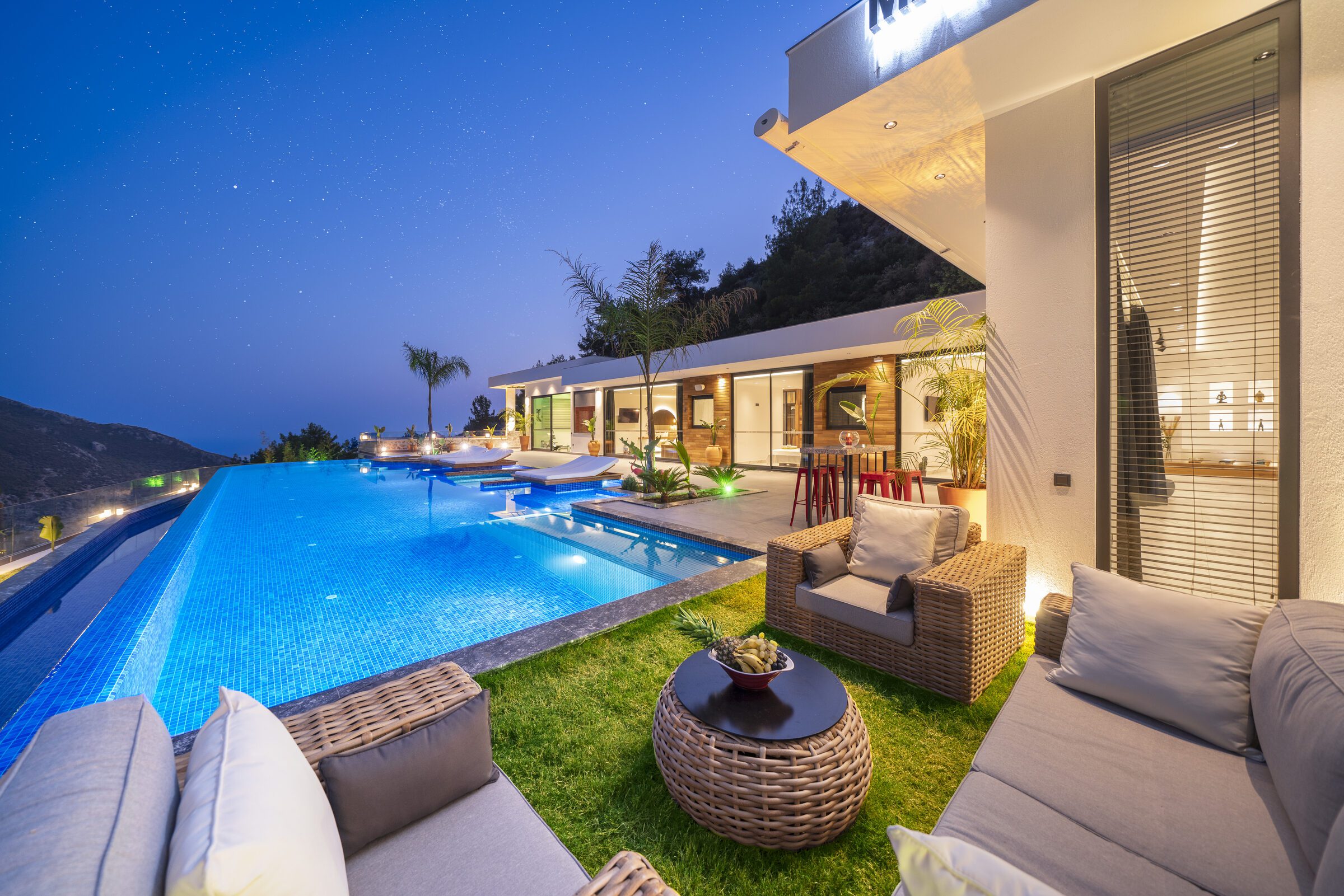Villa Sade is a beautifully designed three-bedroom villa set in a peaceful countryside location near Kalkan, offering privacy, style and stunning valley views. The single-story villa features a spectacular 22-metre infinity pool with jacuzzi section and over-water sun loungers, creating a striking outdoor living space.