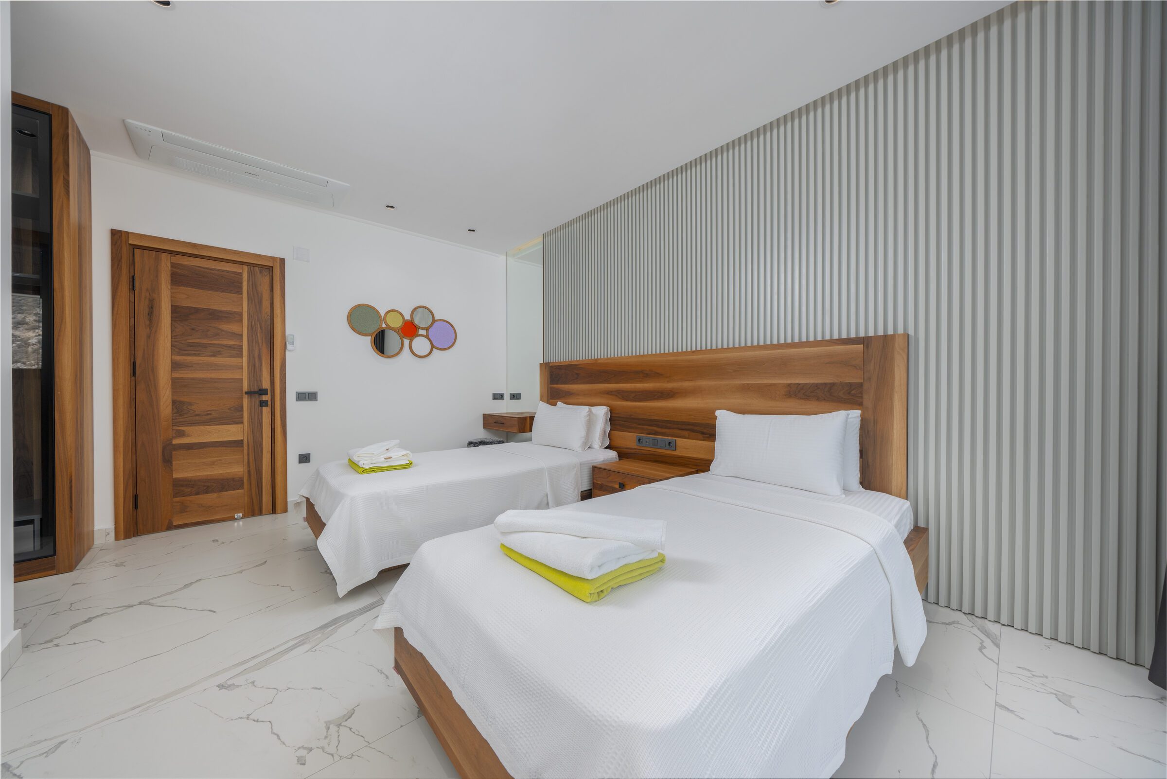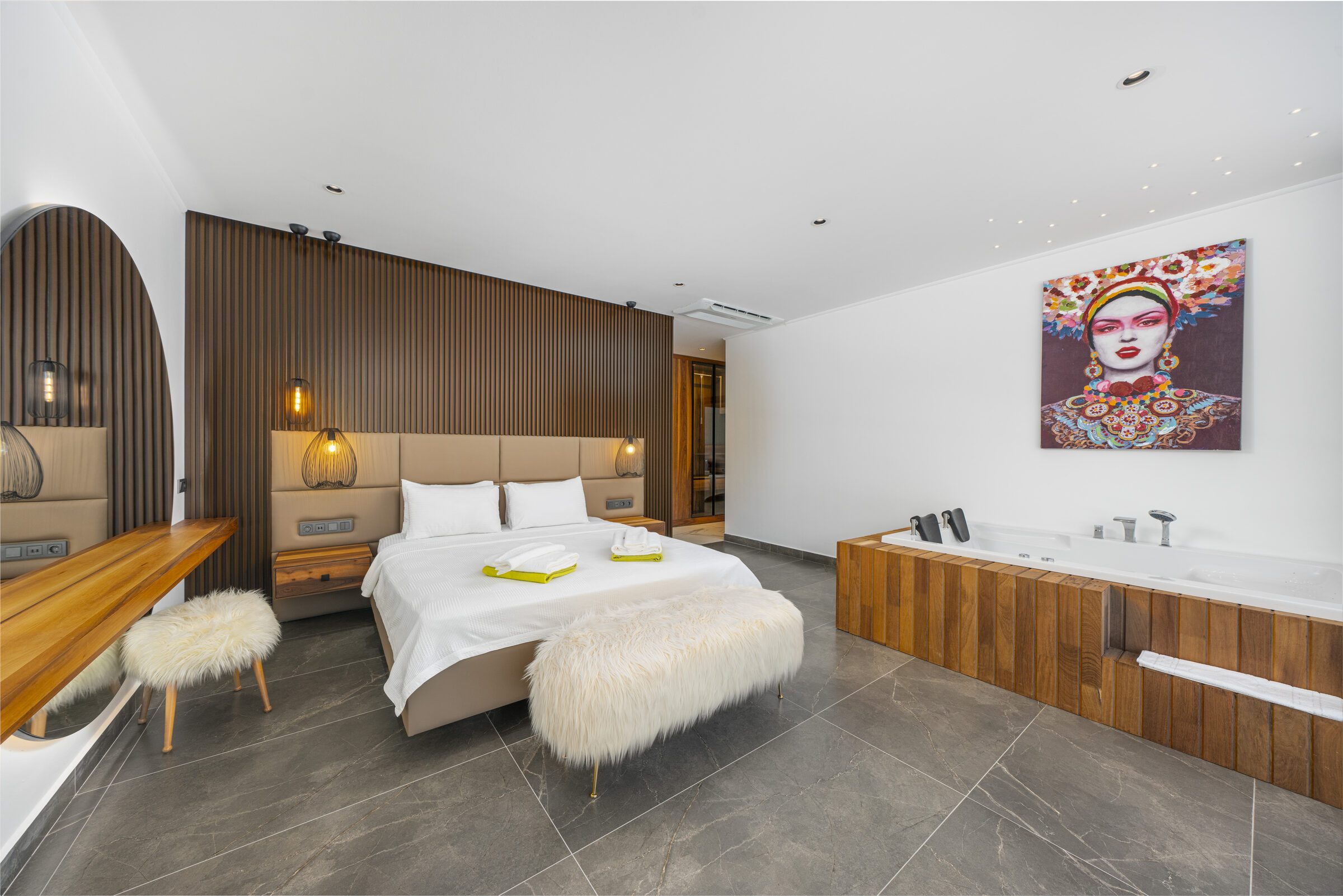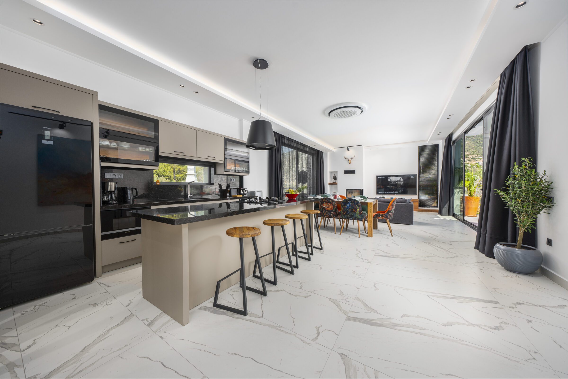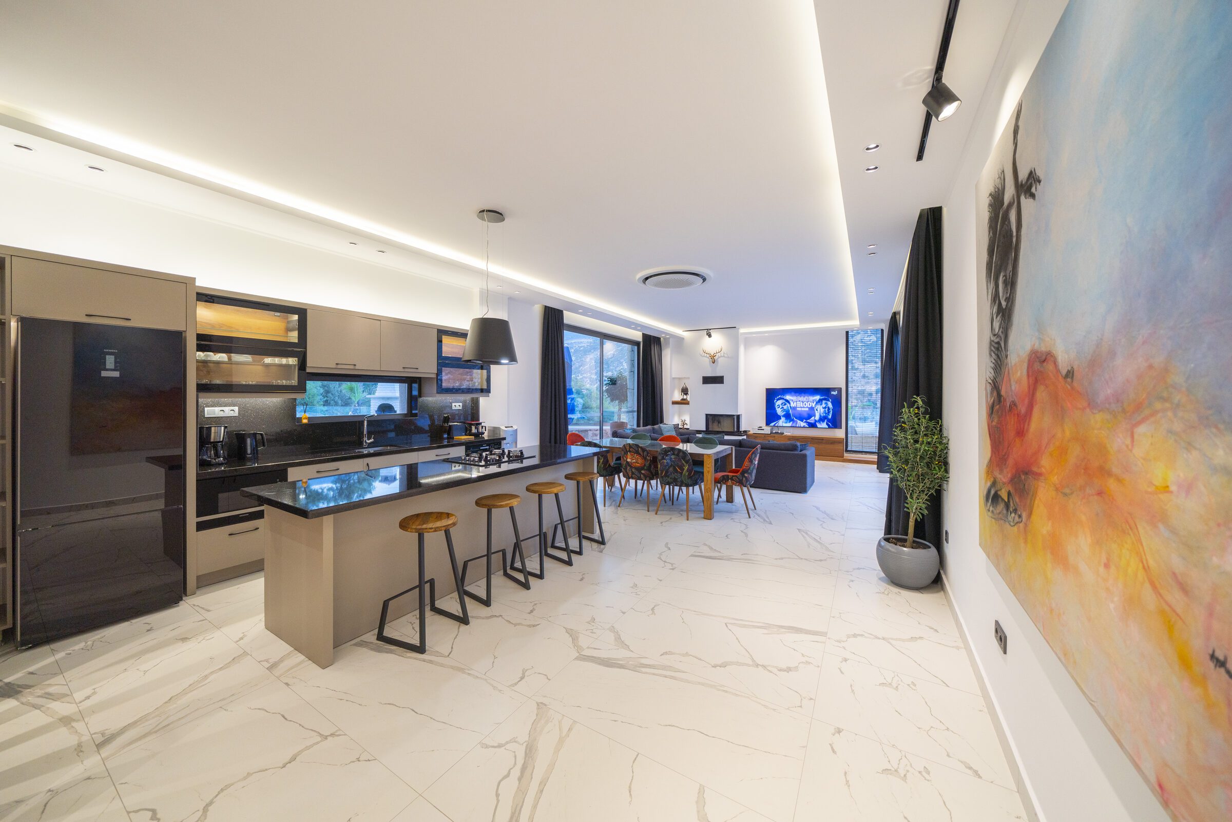 Inside, Villa Sade offers spacious, modern interiors finished to a very high standard. The open-plan living areas are elegant yet comfortable, flowing seamlessly out onto the terrace and pool area, making indoor and outdoor living effortless. The villa also benefits from outstanding private wellness facilities, including a gym, sauna and traditional hamam, adding an extra level of indulgence to the stay.